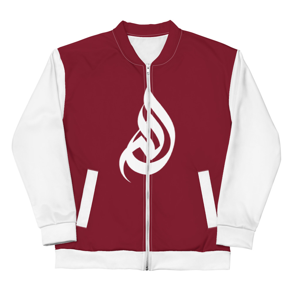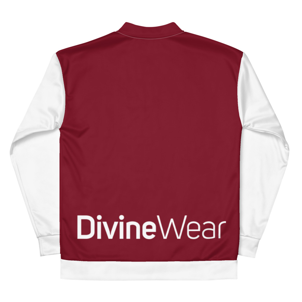 DivineWear Unisex Bomber Jacket in Burgundy
